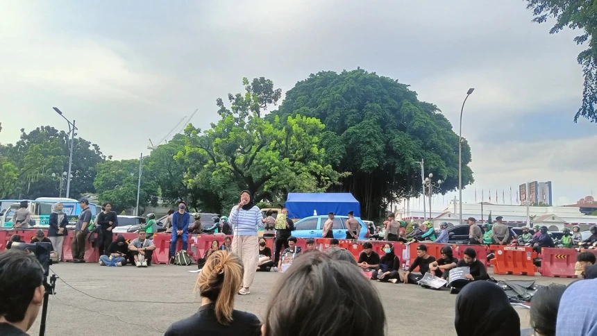Jakarta, Amadanews.com –  Penulis dan aktivis Kalis Mardiasih mengungkapkan pengalaman menghadapi teror buzzer serta ancaman terhadap perempuan dalam orasi pada Aksi Kamisan Ke-905 di depan Istana Merdeka, Jakarta, Kamis (23/4/2026).