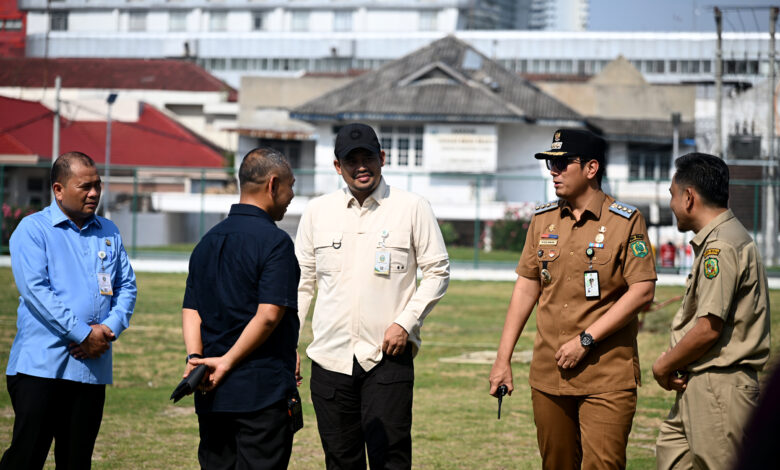 Medan, Amadanews.com–Gubernur Sumatera Utara (Sumut) Muhammad Bobby Afif Nasution meninjau Lapangan Kebun Bunga di Jalan Candi Borobudur, Medan, Selasa (31/3/2026). Peninjauan dilakukan untuk memastikan fasilitas olahraga kebanggaan warga Medan tersebut memenuhi standar kualitas dan layak digunakan.