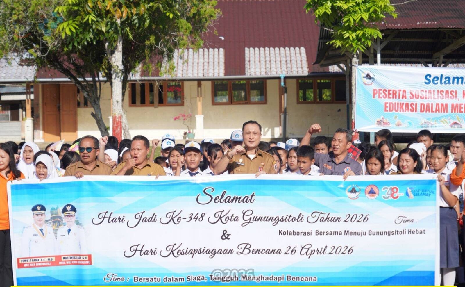 Sekda mengajak seluruh peserta mengikuti sosialisasi dan simulasi dengan serius agar memahami langkah penyelamatan diri secara tepat. Ia juga mengundang masyarakat untuk berpartisipasi aktif dalam rangkaian peringatan Hari Jadi Kota Gunungsitoli Ke-348 yang akan berlangsung pada 21–25 April 2026 di Alun-Alun Kota Gunungsitoli.