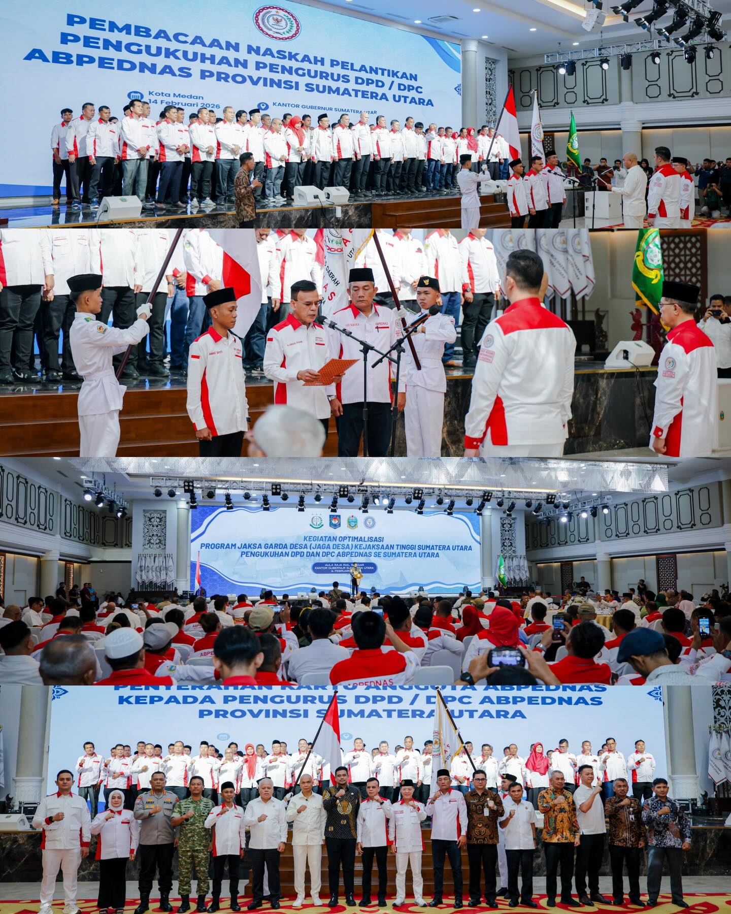 Pengukuhan Pengurus DPD dan DPC Asosiasi Badan Permusyawaratan Desa Nasional (Abpednas) Sumut di Aula Raja Inal Siregar, Medan, Sabtu (14/2/2026).