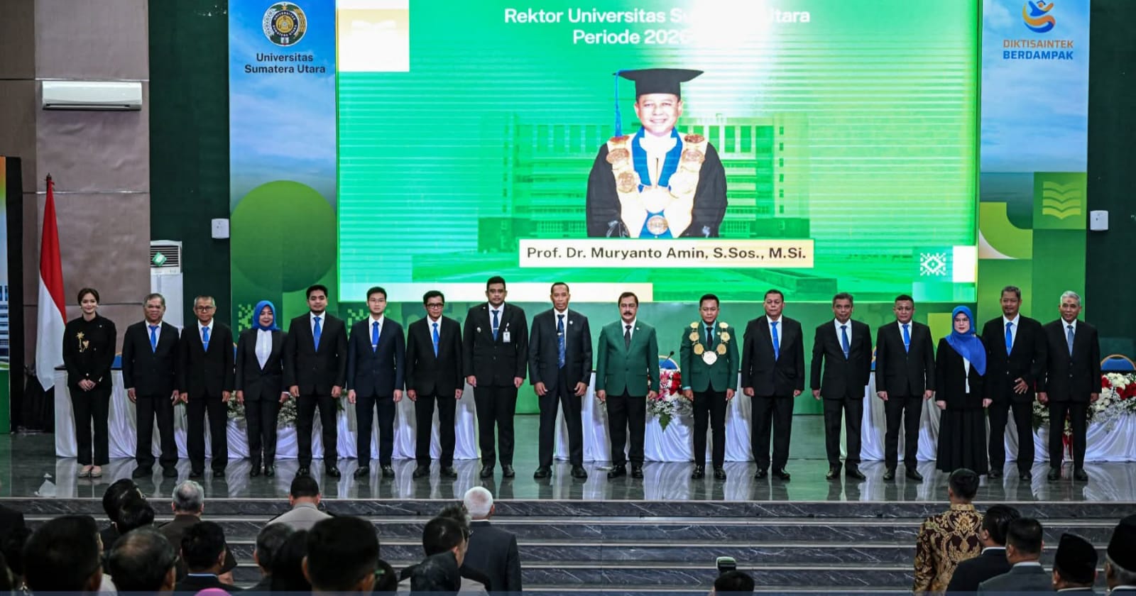 Pada kesempatan tersebut, Prof. Dr. Muryanto Amin, S.Sos.,M.Si kembali dilantik sebagai Rektor USU Periode 2026–2031.