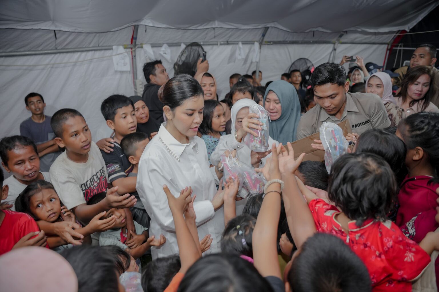 Hal itu disampaikan Kahiyang usai mendampingi kunjungan SERUNI KMP dalam penyaluran bantuan di Hunian Sementara (Huntara) Tanah Merah, Hutanabolon, Kecamatan Tukka, Rabu (11/2/2026). Menurutnya, bantuan tersebut merupakan wujud nyata kepedulian dan solidaritas dalam meringankan beban warga serta mempercepat pemulihan pascabencana.