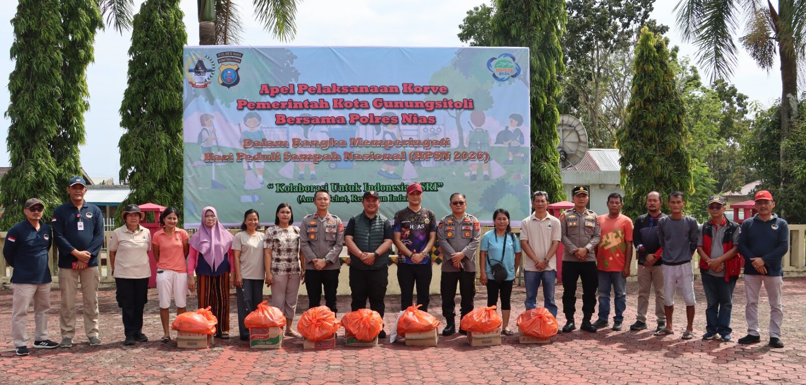 Gunungsitoli, Amadanews.com – Dalam rangka memperingati Hari Peduli Sampah Nasional (HPSN) Tahun 2026, Polres Nias bersama Pemerintah Kota Gunungsitoli melaksanakan Apel Pelaksanaan Korve Bersama di Halaman Mapolres Nias, Jumat (06/03/2026).