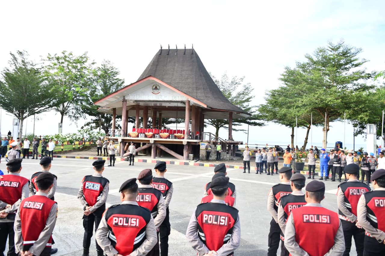 Gunungsitoli, Amadanews.com – Polres Nias menggelar Apel Kesiapan Pengamanan (Pam) Perayaan Malam Takbiran dan Sholat Idul Fitri 1447 H Tahun 2026 yang dipusatkan di Taman Ya’ahowu, Kota Gunungsitoli, Sumatera Utara, Kamis (19/03/2026). Kegiatan ini dipimpin langsung oleh Kapolres Nias, AKBP Agung S.D.C, S.Psi., M.Psi., Psi., M.K.P dan diikuti oleh personel gabungan dari Polres Nias, TNI, serta instansi terkait lainnya.