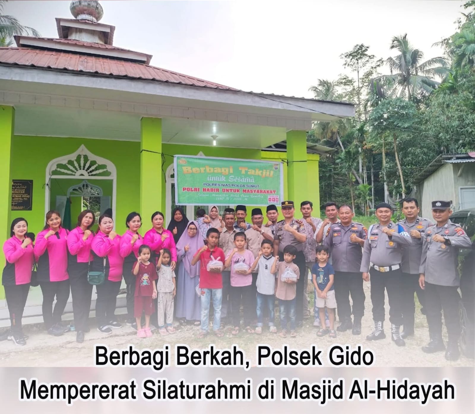 Kapolsek Gido, AKP Sahabat Zebua menyampaikan bahwa kegiatan yang berlangsung di Masjid Mualaf Al-Hidayah tersebut menjadi wujud kepedulian Polri sekaligus mempererat tali silaturahmi dengan masyarakat. Dalam suasana penuh berkah ramadhan ini, pembagian takjil diharapkan dapat membantu warga dalam persiapan berbuka puasa serta menciptakan suasana kebersamaan, ujarnya.