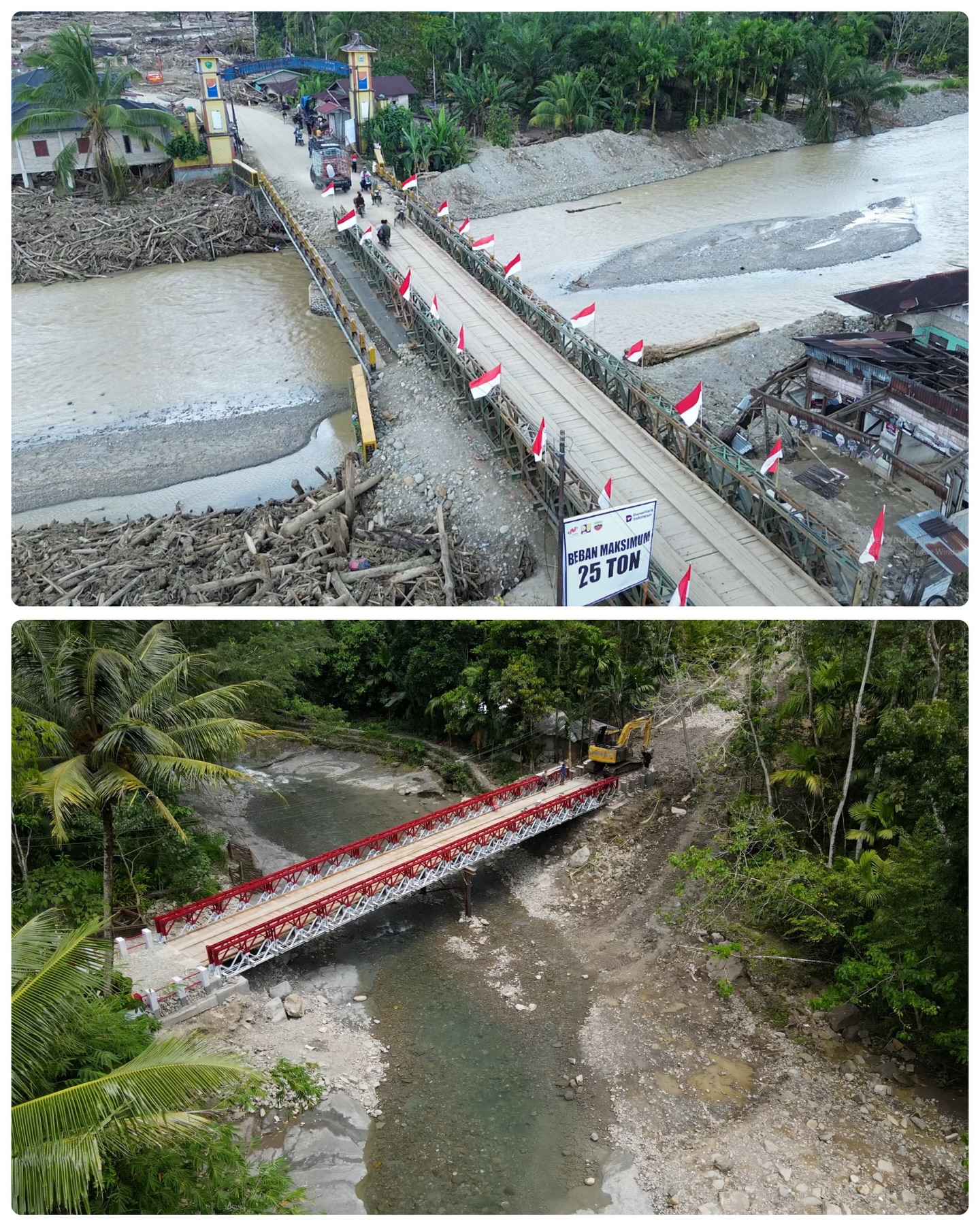 Adapun 218 jembatan yang diresmikan terdiri dari; 59 unit Jembatan Bailey, 82 unit Jembatan Armco dan 77 unit Jembatan Perintis/Gantung.