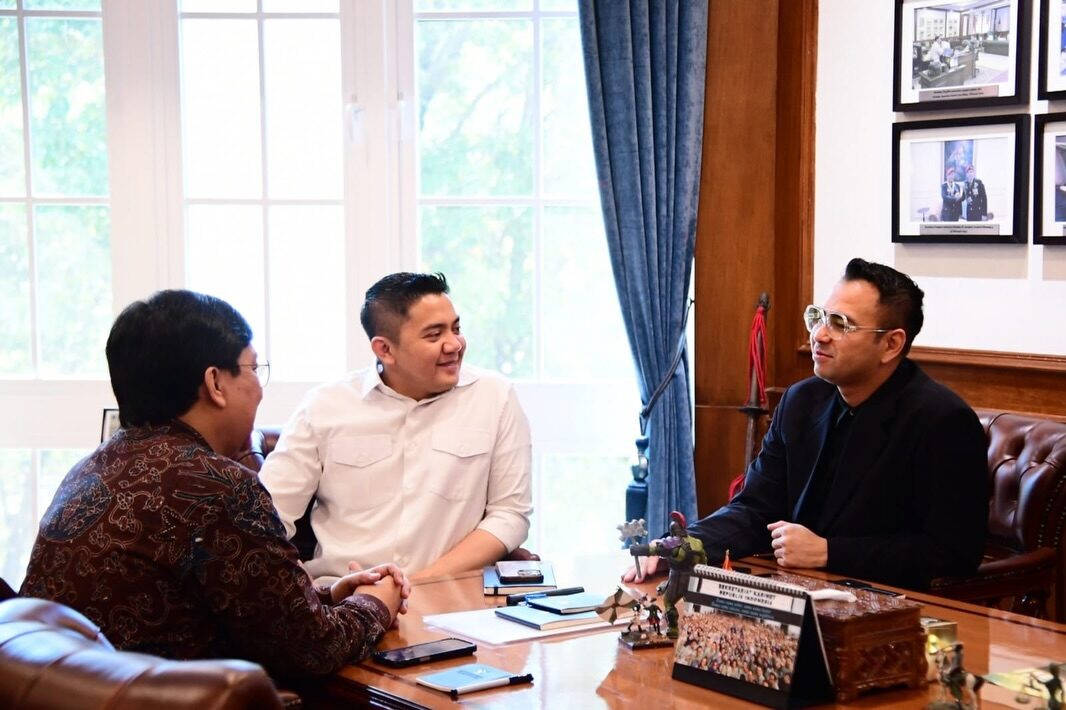 Sekretaris Kabinet (Seskab) Teddy Indra Wijaya bersama Yovie Widianto dan Raffi Ahmad, di Kantor Sekretariat Kabinet, Jakarta, Rabu (18/3/2026) sore