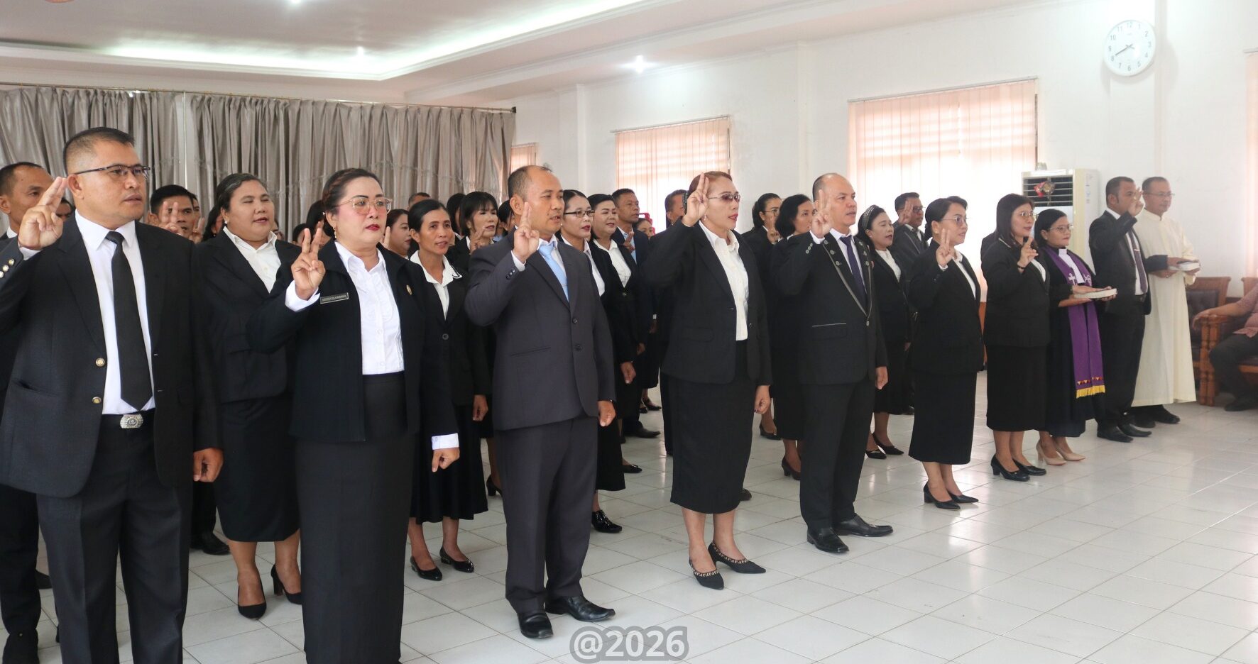 Gunungsitoli, Amadanews.com – Wali Kota Gunungsitoli, Sowa’a Laoli, S.E., M.Si., didampingi Wakil Wali Kota Gunungsitoli, Martinus Lase, S.H., secara resmi melantik dan mengambil sumpah/janji Kepala Sekolah serta Penjabat Pengawas, termasuk guru yang diangkat, dipindahkan, dan diberhentikan dalam tugas tambahan sebagai Kepala Sekolah di lingkungan Pemerintah Kota Gunungsitoli. Kegiatan berlangsung tertib dan khidmat di Ruang Rapat II Kantor Wali Kota Gunungsitoli, Jumat (27/03/2026).