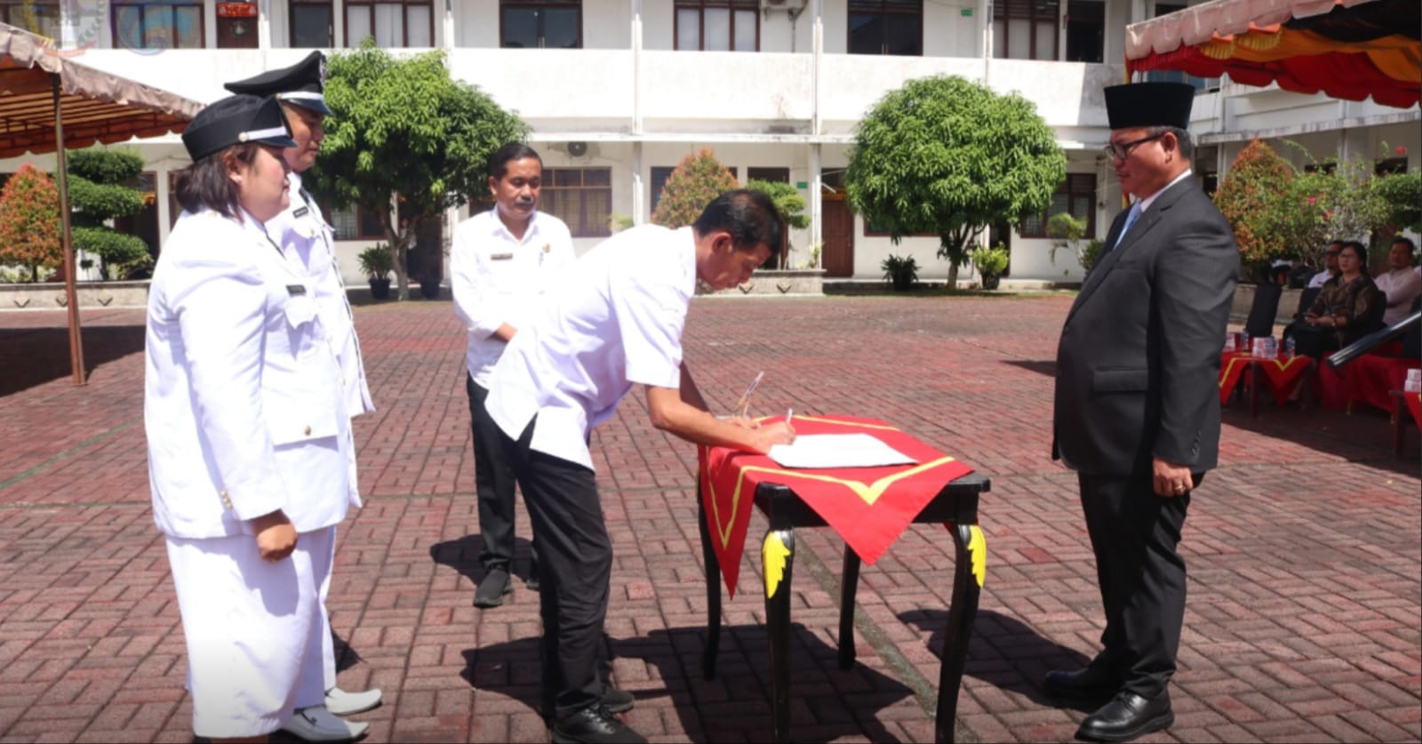 Kegiatan tersebut dipimpin langsung oleh Wali Kota Gunungsitoli dan turut disaksikan serta dihadiri oleh Wakil Wali Kota Gunungsitoli Martinus Lase, SH, Pj. Sekretaris Daerah Kota Gunungsitoli, Kepala Kejaksaan Negeri Gunungsitoli, Wakapolres Nias, para Staf Ahli/Asisten Wali Kota dan Kepala Perangkat Daerah Lingkup Pemko Gunungsitoli, Camat se-Kota Gunungsitoli, Ketua TP-PKK Kota Gunungsitoli, Ketua I TP-PKK Kota Gunungsitoli, Ketua Dharma Wanita Persatuan Kota Gunungsitoli, para Rohaniawan serta para pejabat yang dilantik.